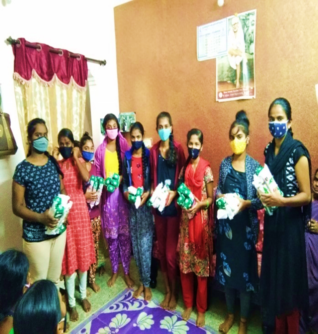 With support from Cividep-India, Munnade distributed sanitary items to 325 workers and 200 adult girls. Each bag contained soap, shampoo, masks, hand sanitiser, and more.